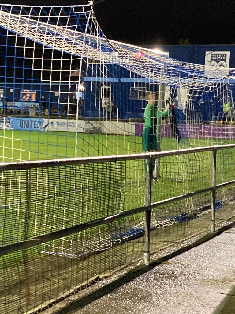 The game kicked off and Ossett were all over us. It wasn’t long before they were getting in behind the defence. They went 1-0 up on 2 minutes. A hard, low shot that fizzed off the wet surface. Pat got his hand to it but couldn’t keep it out. On 6 minutes, they were 2-0 up. This time the forward dribbled past a few defenders and struck another low shot.