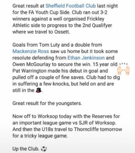 Seeing his name mentioned on the Sheffield FC u18’s Facebook write up wasn’t bad either.