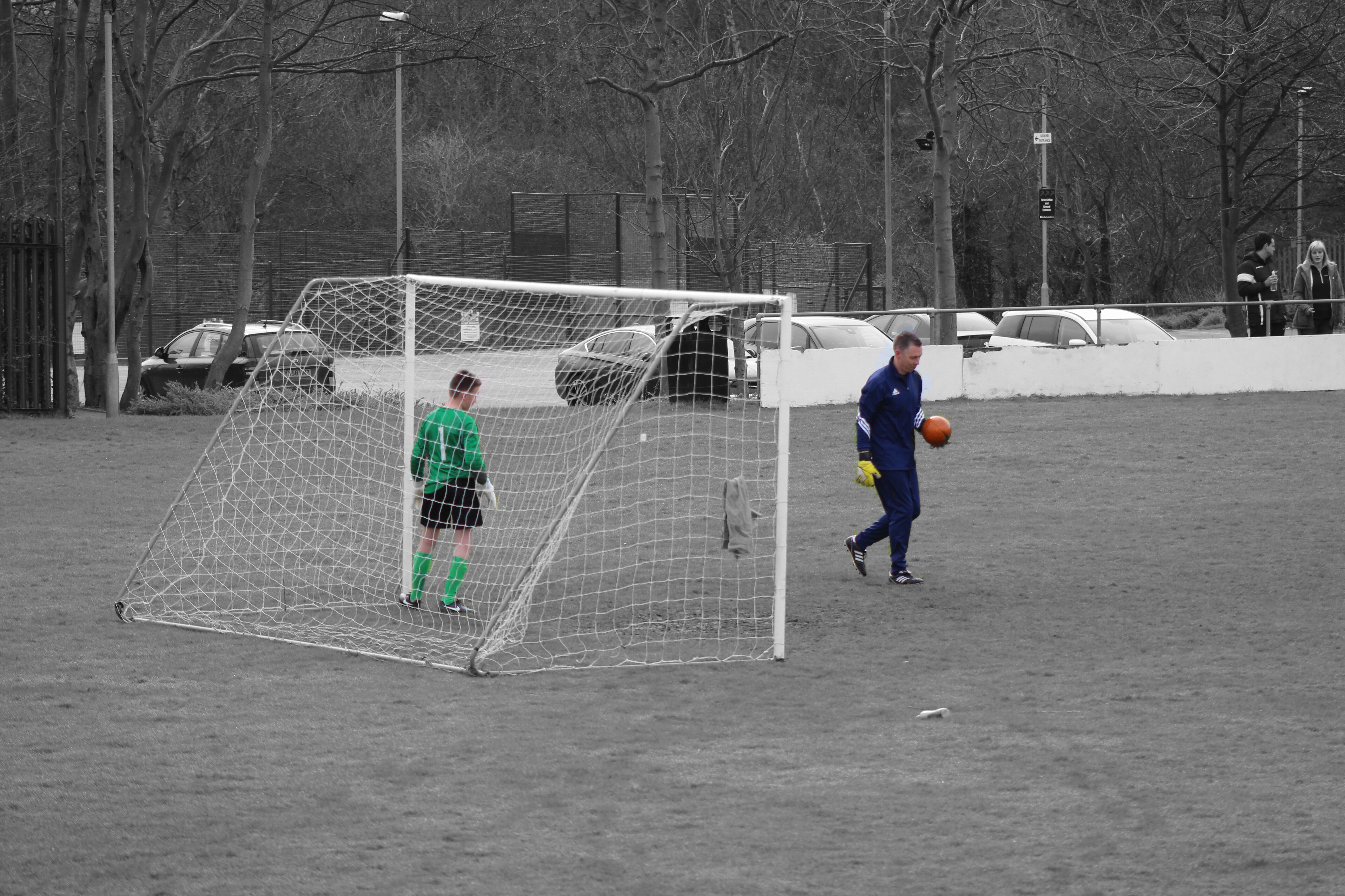 He had trained in full size goals for a good deal of the previous season (again because of a lack of the right size ones) but had always had the safety net of them being much bigger than the match day goals he’d be facing shots in.  The common theory is that if you can keep shots out of a full size goal, you can keep them out of smaller goals, can’t you.  Anyway, shots just below the bar or just inside the post that beat the keeper in training don’t matter too much because they’ll go over or wide on a Sunday, or he’ll at least have a fighting chance of saving them.